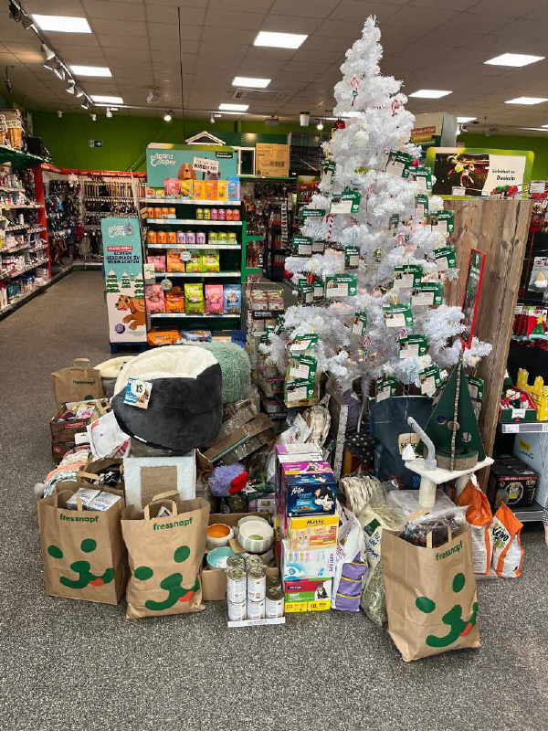 Auf jeden Fall sagen wir alle, Tiere und Menschen, das gesamte Team – ganz herzlichen Dank für die tollen Geschenke aus dem Fressnapf in Overath. So kann das neue Jahr mit vielen neuen Sachen starten.