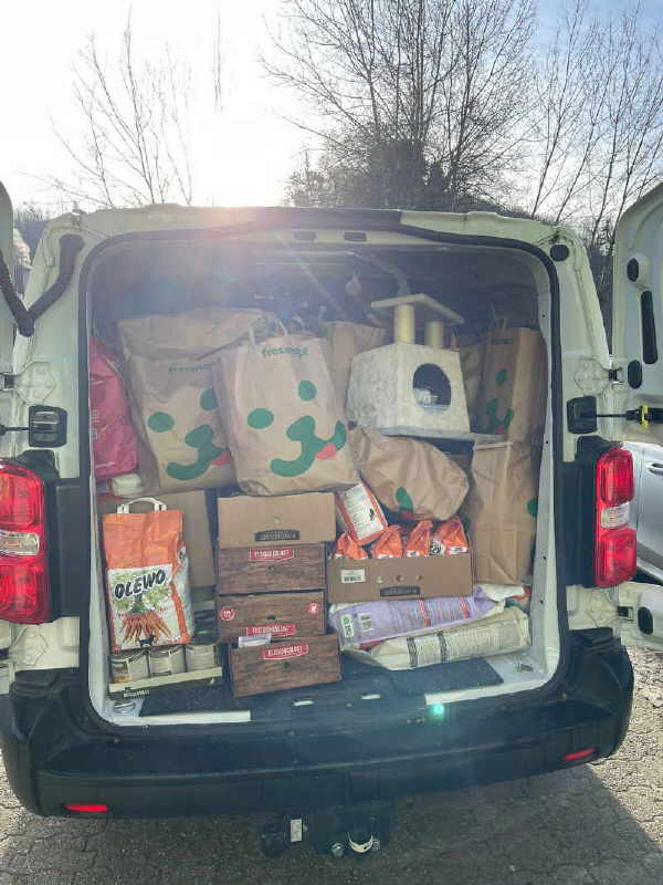 heute hab ich noch mal eine schöne Geschichte für Euch. Der Fressnapf in Overath und besonders die Kunden des Fressnapfes in Overath haben sich bei der diesjährigen Weihnachts-Wunsch-Baum-Aktion für unsere Tierheimtiere selbst übertroffen. Ich glaube, da wurden nicht nur unser aller Wünsche erfüllt, sondern noch viel mehr. Unser großer Transporter war bis zum Rande gefüllt. Wir waren froh, dass die Fahrerin noch hineingepasst hat, um die ganzen tollen Sachen zu uns zu bringen.