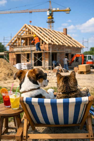 Es wird ein kleines Hundehaus mit 6 Zwingern incl. Wirtschafträumen gebaut.
